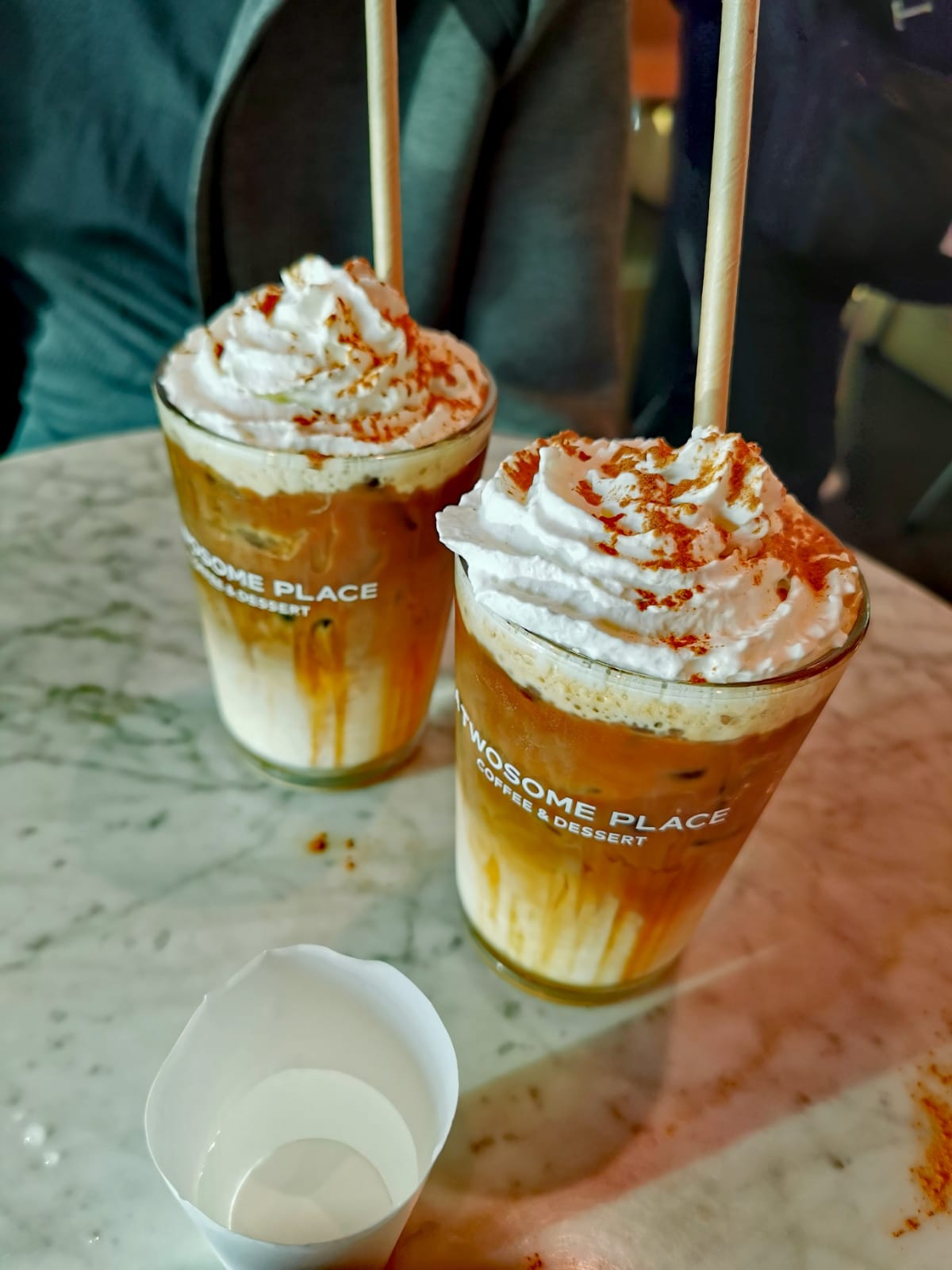 春川 九峰山的咖啡街,有十多間大大小小咖啡店,團費包含的免費嘆下午茶,可以任擇各種咖啡飲品,今次安排哩間連鎖店出品好好, 我點咗焦糖咖啡加忌廉,咖啡店天台有玻璃台打咭,風景也美美。